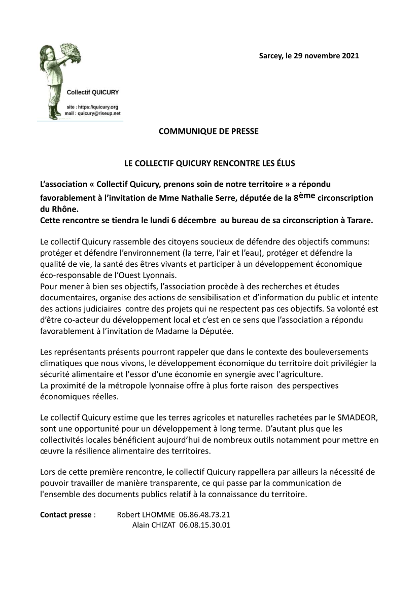 Lettre aux adhérent-es et sympathisant-es du Collectif Quicury "Prenons soin de notre Territoire"
