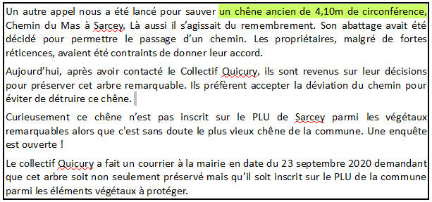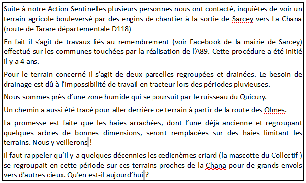 Par ailleurs, la chasse vient d’être ouverte et nous rappelons à cette occasion que les chasseurs peuvent aussi être des défenseurs de la biodiversité: en 2008 ils s’étaient opposés vivement à l’A89, aujourd'hui la Fédération de chasse est un acteur important de la replantation de haies. Nous espérons travailler ensemble pour la préservation de notre territoire.
