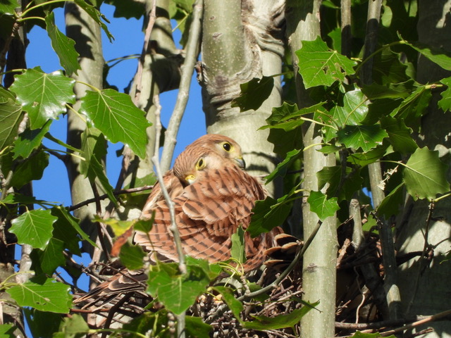 - des Faucons crécerelles immatures sur le nid, prêts à s’envoler.