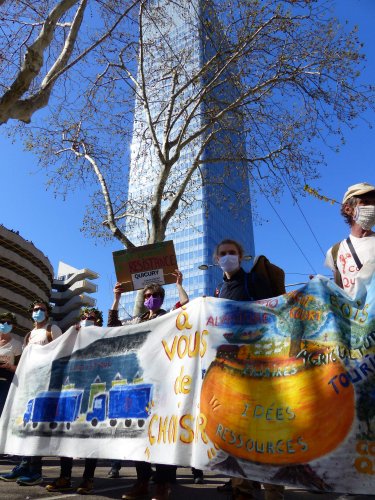 Photos prises le 17 Octobre 2020 durant l'action organisée par le Collectif Paysans en lutte contre les entrepôts logistiques de l'Ouest Rhodanien et le Collectif Quicury « Prenons soin de notre territoire », dans le cadre de la journée internationale de l’alimentation.